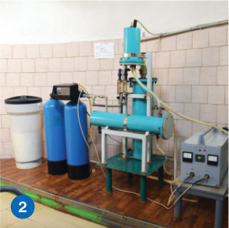 In order to exclude possible emergency situations, instead of using gaseous chlorine to disinfect drinking water, the block-type electrolysis units of the Flame-2 type were installed at each well, designed to produce sodium hypochloride solution by electrolysis of sodium chloride solution.